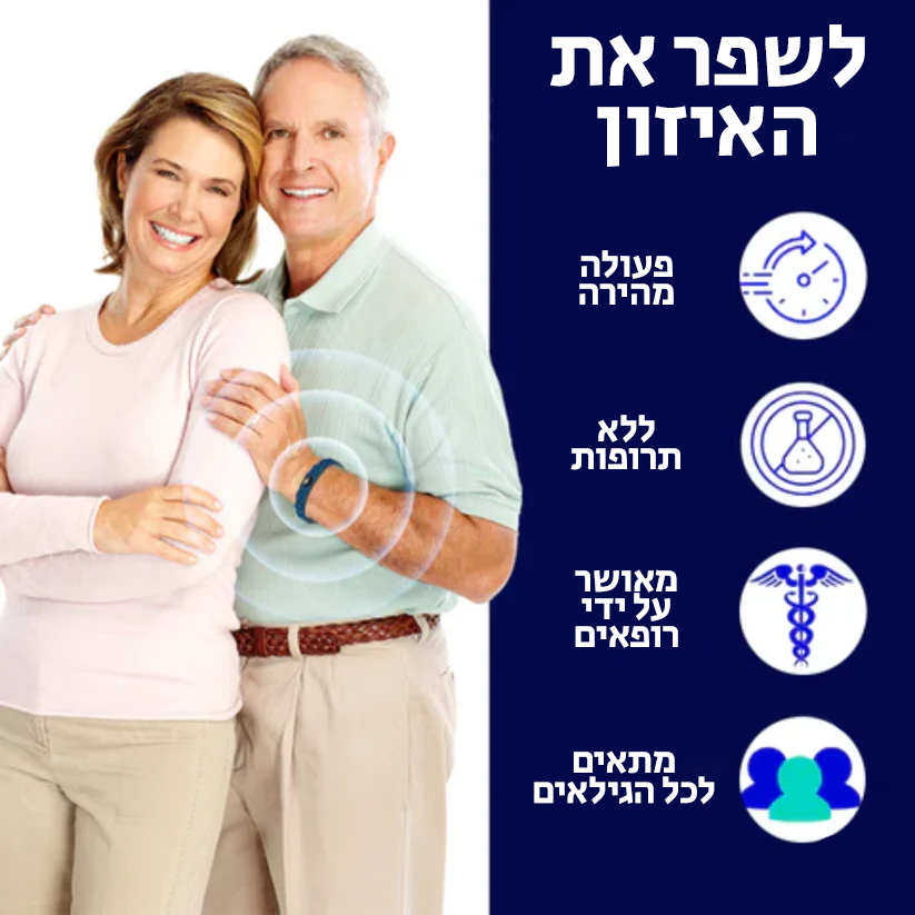 השיגו את צמיד IonFlex™ כבר היום ושפרו את שיווי המשקל והיציבות שלכם תוך 24 שעות בלבד – ללא צורך במכשירים מסובכים. חוו את החופש בתנועה חלקה ובטוחה והשיבו לעצמכם את השליטה באופן מיידי!